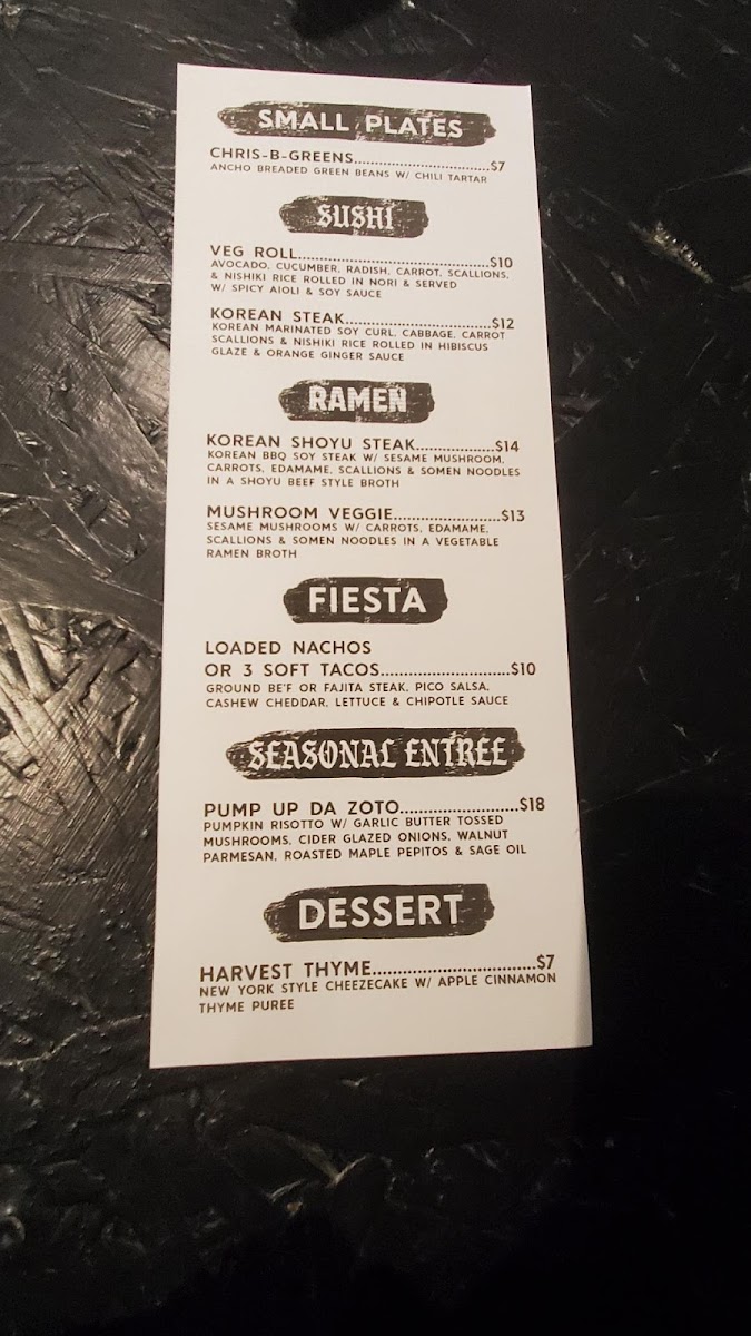 Cha to Gelato Zen Menu